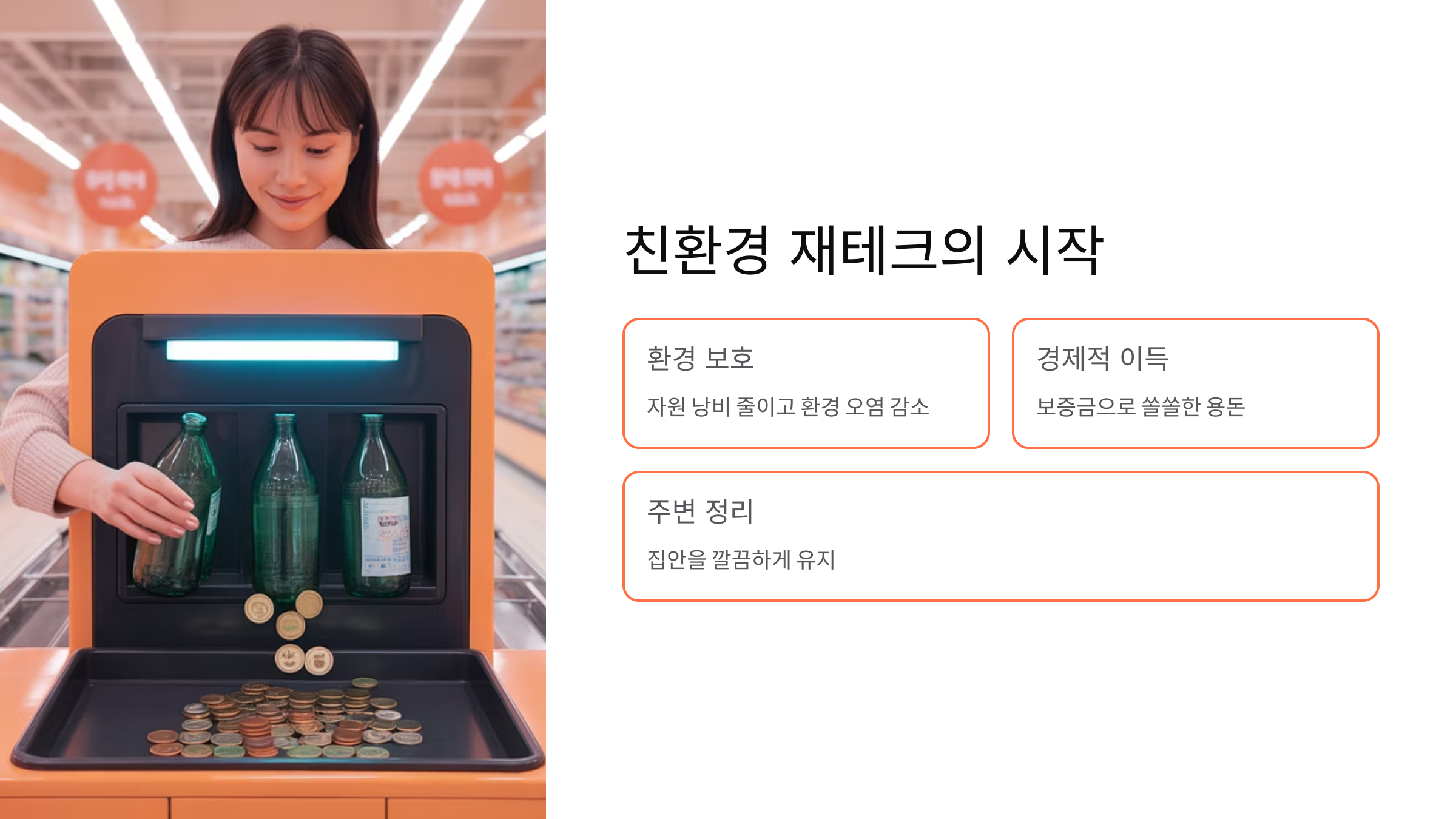 - 경제적 이득: 빈 용기 보증금을 현금이나 포인트로 돌려받아 쏠쏠한 용돈을 벌 수 있습니다. 💸 (티끌 모아 태산!)