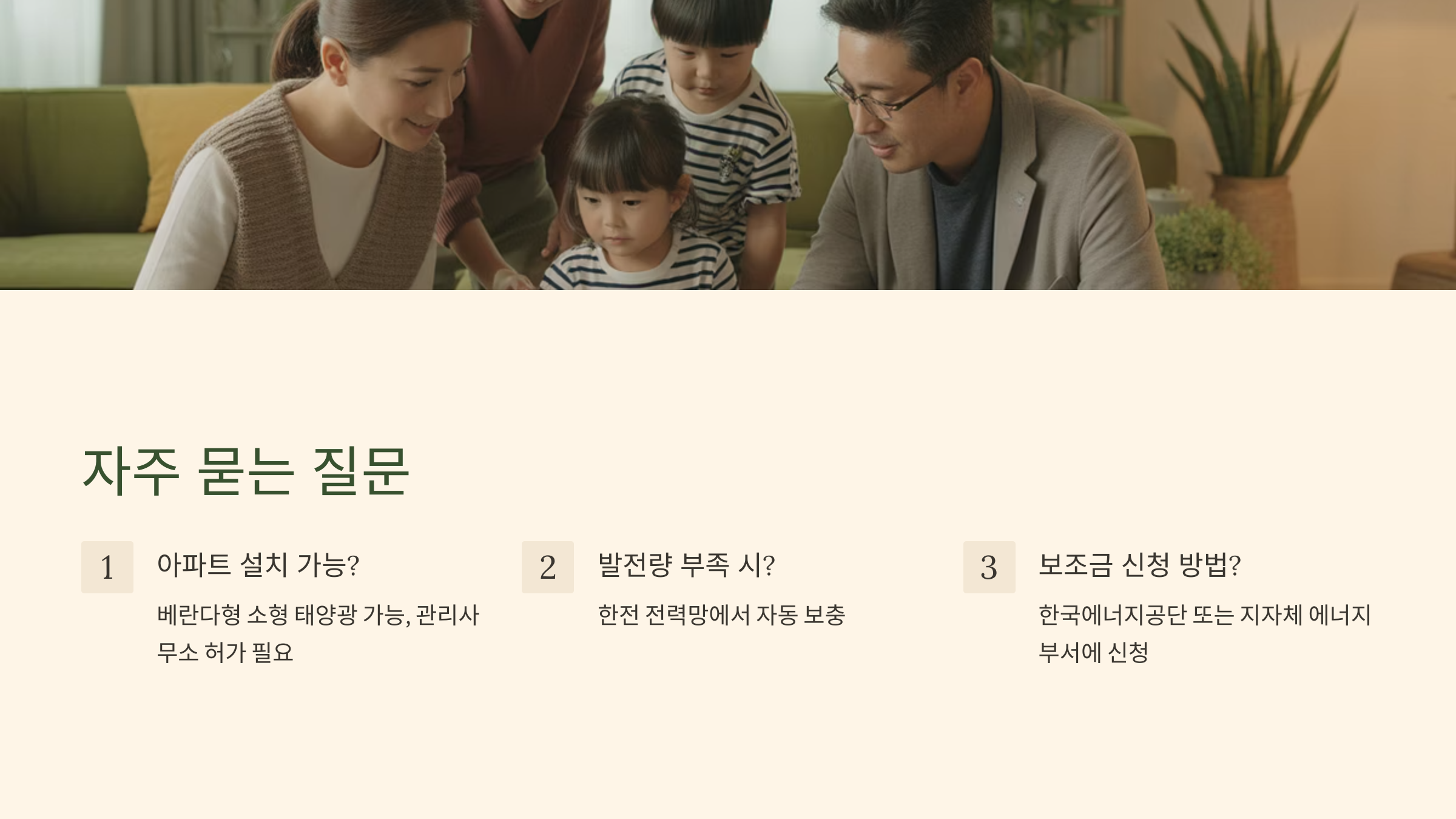 🅰️ 일부 아파트는 베란다형 소형 태양광 설치가 가능합니다. 관리사무소 허가가 필요해요.