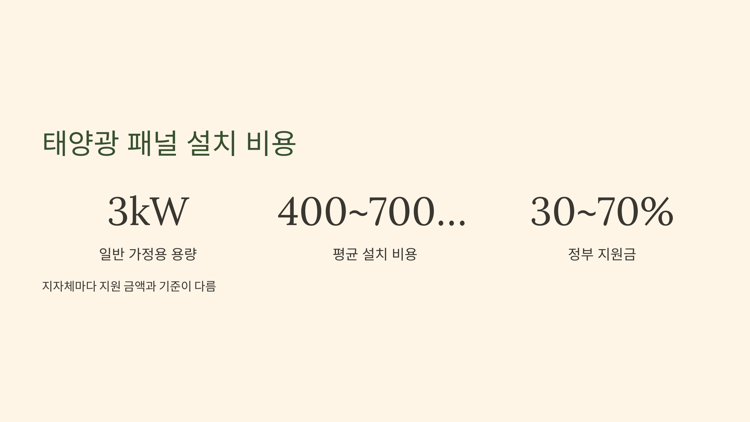 - 3kW 설치 시 평균 비용: 약 600만 원