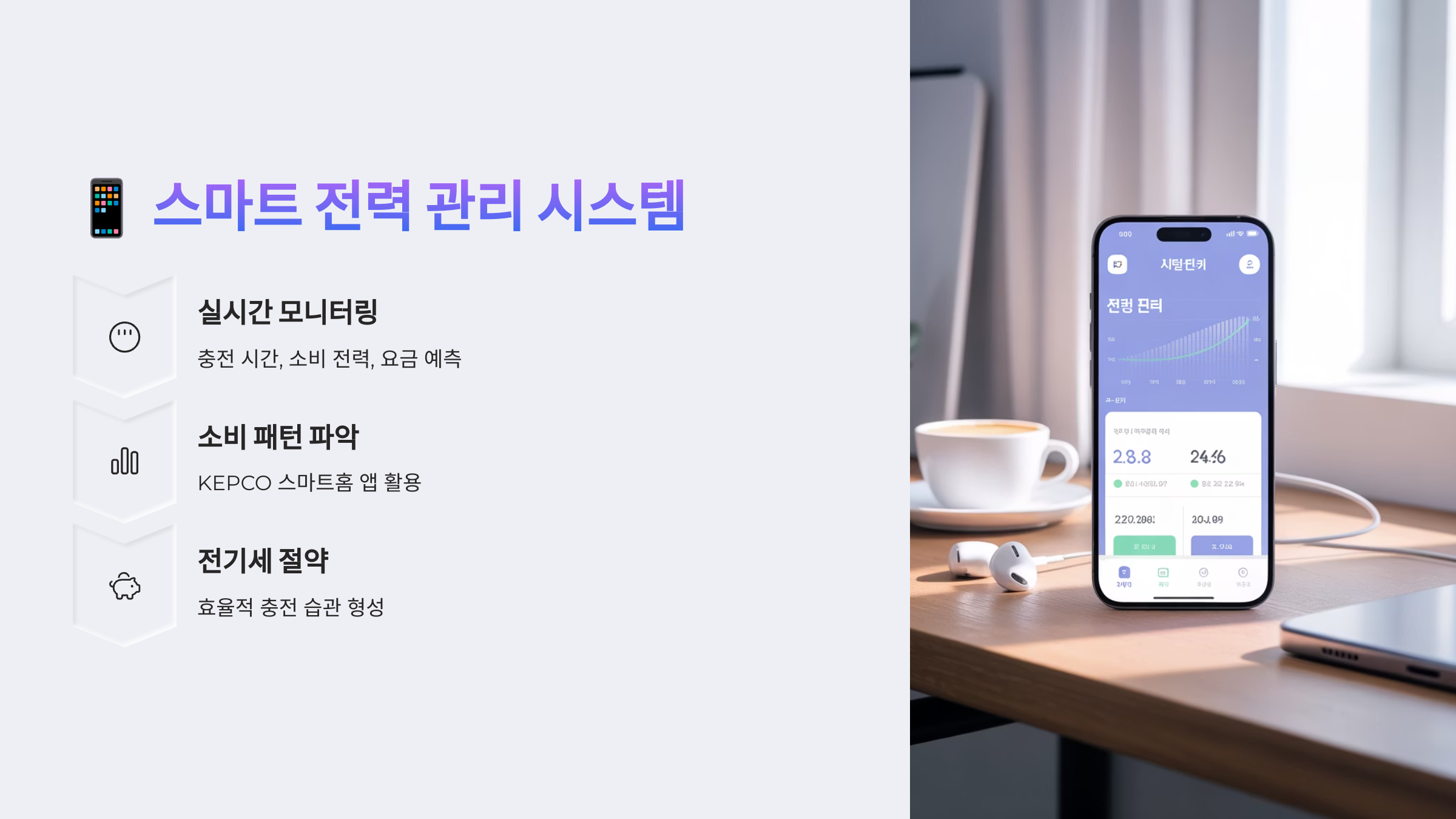 📲 KEPCO 스마트홈 앱이나 EV 전용 충전 앱을 활용하면