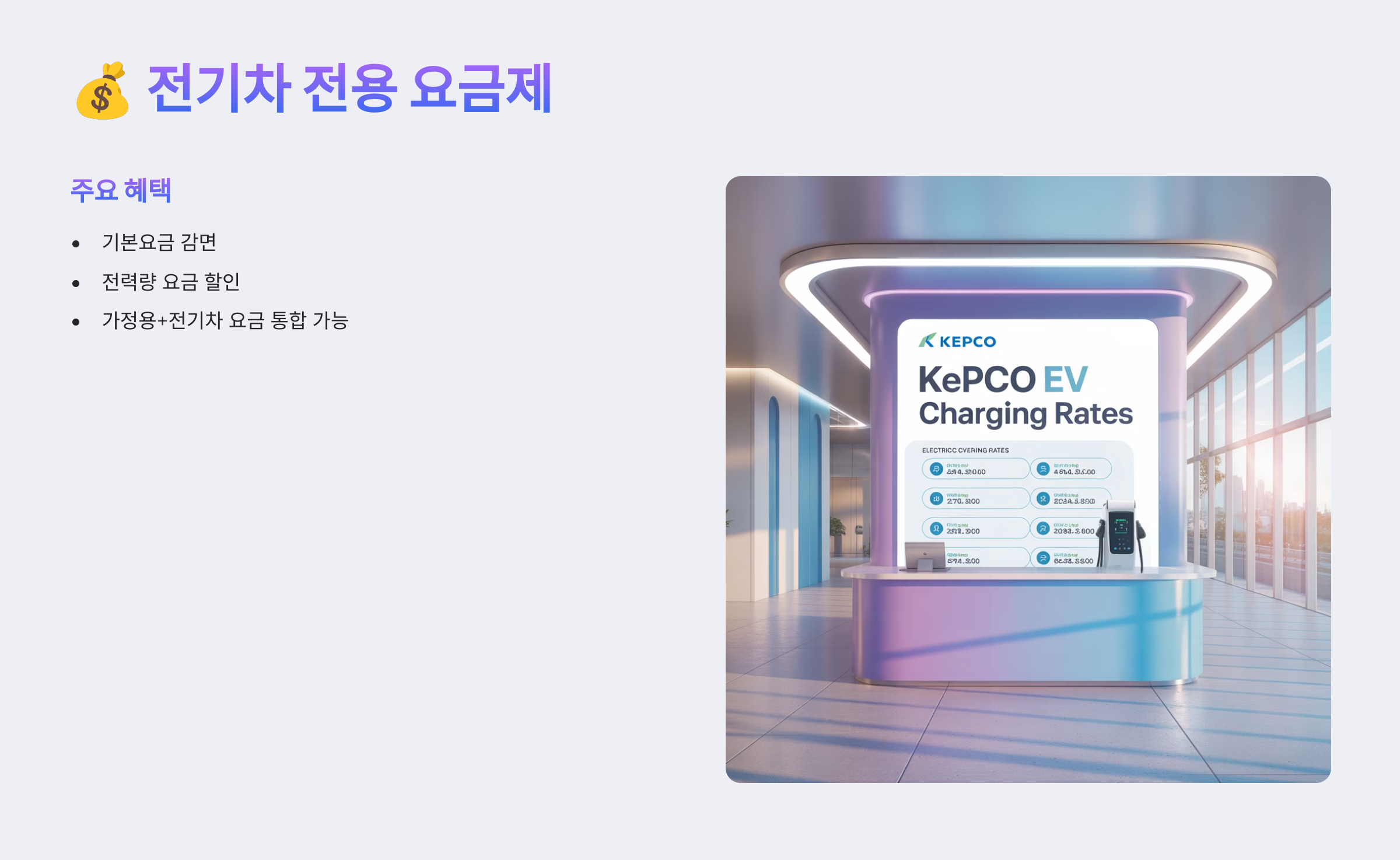 한전은 전기차 전용 전기요금제를 별도로 운영하고 있으며,