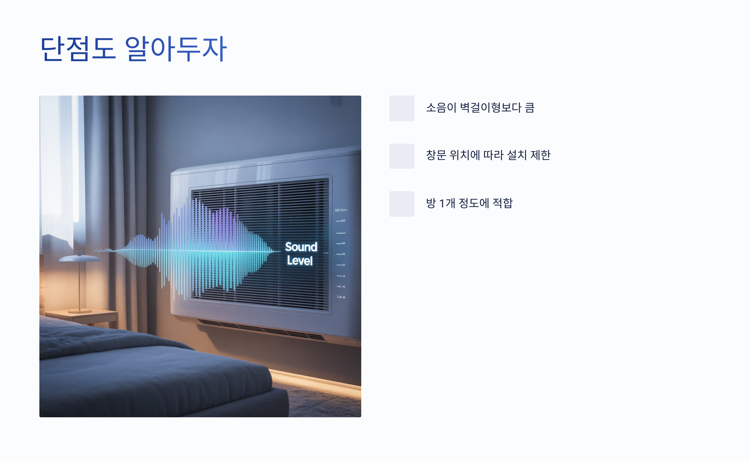 - 냉방 범위 제한: 넓은 거실보다는 방 1개 정도에 적합