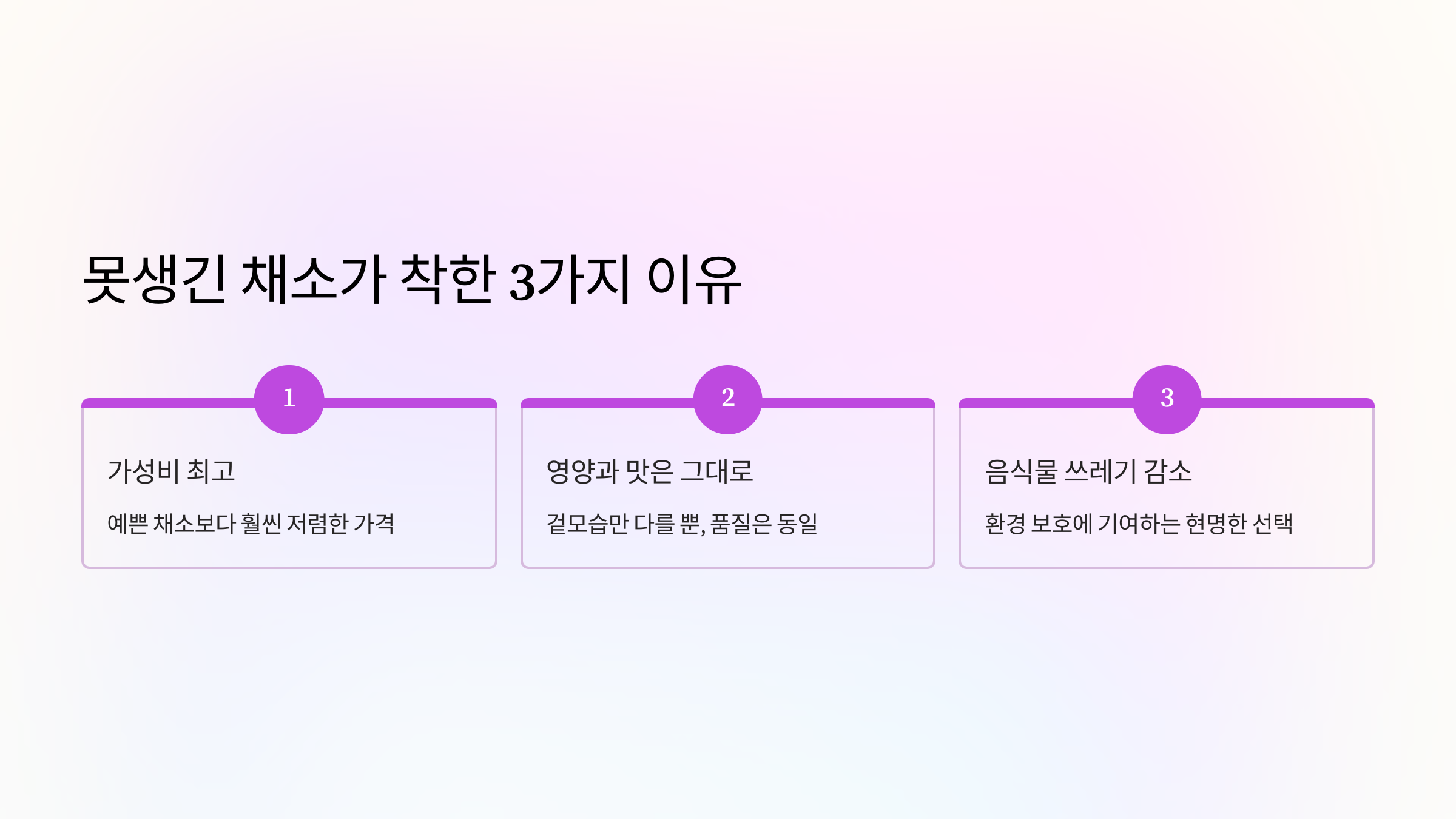 - 🗑️ 음식물 쓰레기 줄이기: 못생겼다는 이유로 버려지는 채소들이 정말 많아요. 우리가 못난이 채소를 구매하고 활용하는 것은 음식물 쓰레기를 줄이고 환경을 보호하는 아주 중요한 일이랍니다.