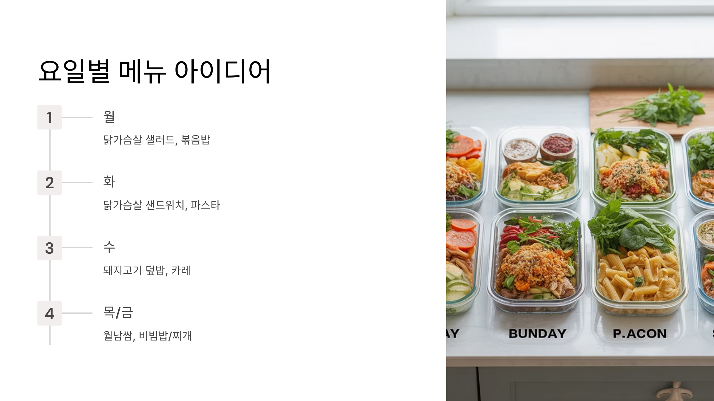 🍽️ 밀프렙 실전! 요일별 메뉴 아이디어 (예시)